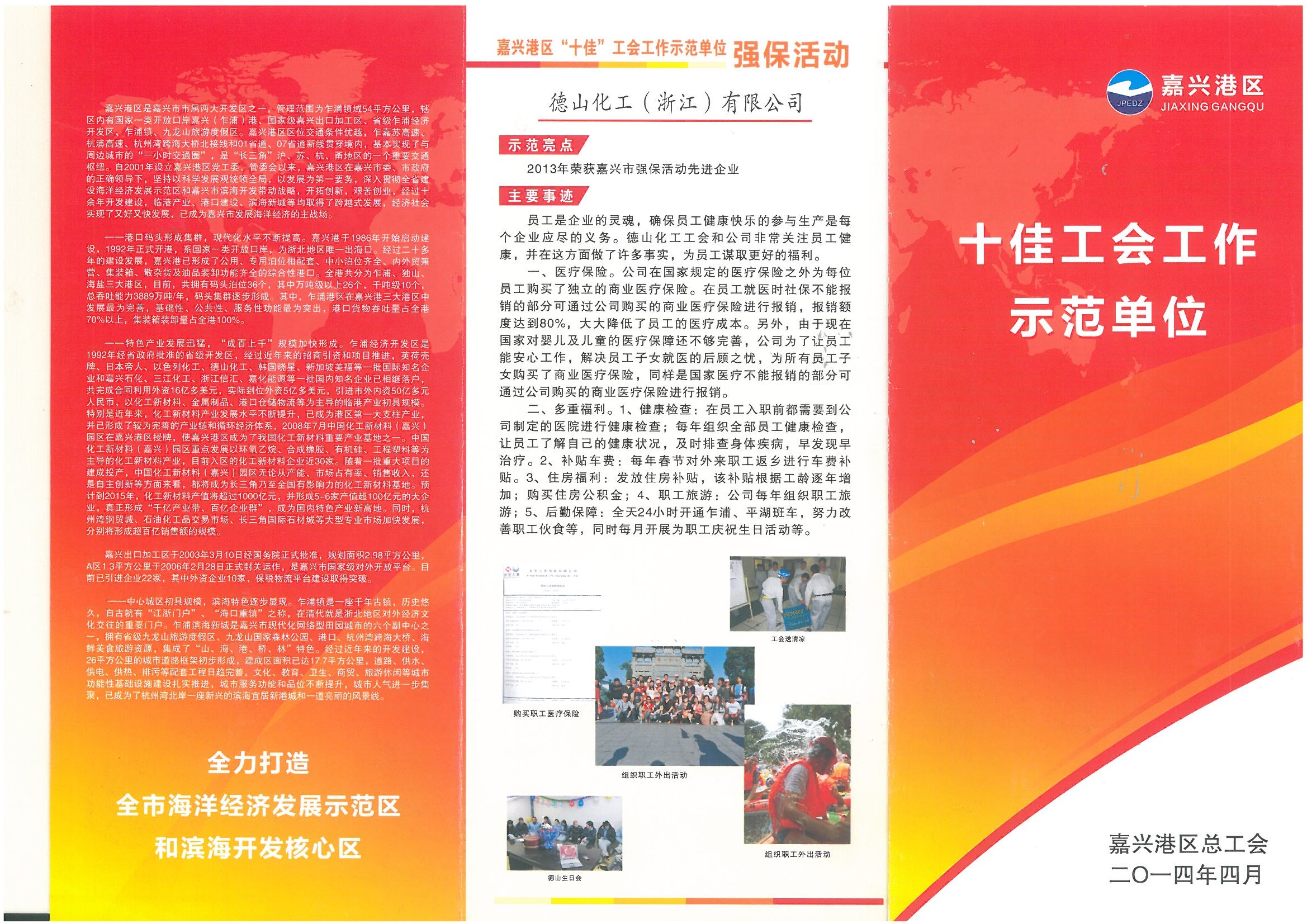 我工会荣获嘉兴港区十佳工会工作示范单位称号 2014-04-28